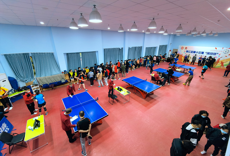 “枫林杯”职工乒乓球比赛在区总工会和枫林街道办事处的积极倡导和共同推动下,已连续举办了12届。今年,徐汇区总工会坚持“职工体育贵在坚持、疫情常态健身常态”的理念,在坚持疫情常态化防控不放松、注重赛前防控、赛中消杀等细节的前提下继续开展相关文体活动。本次比赛为男女混合团体赛,采取单败淘汰制,为了控制比赛规模和参赛人次,仅对前几届种子球队及部分区域单位发出了邀请,最终16家单位代表队参加比赛。
