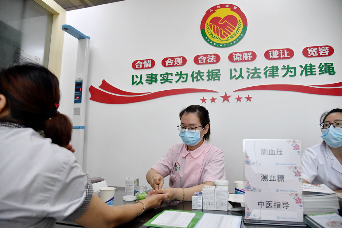 启动仪式举办地凤创谷科创基地,是首批挂牌的7家健康服务点之一。记者在现场看到,当天上午9点,位于大楼5楼的服务点义诊活动正在进行,血压、血糖测试,来自社区医院的医生们从专业角度为大楼职工答疑解惑。