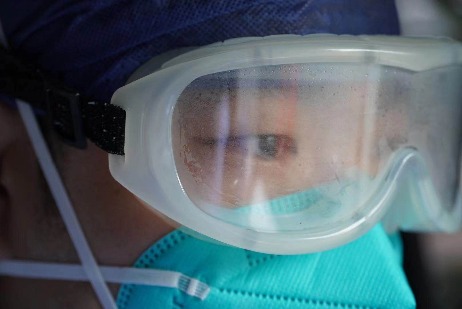 小林穿着密不透风的隔离服,出勤结束,衣服已被汗水浸透,“每次脱掉防护服,像刚洗过头一样。”对驾驶班的成员来说,“反而之前台风的时候还舒服点,风凉,温度低。”