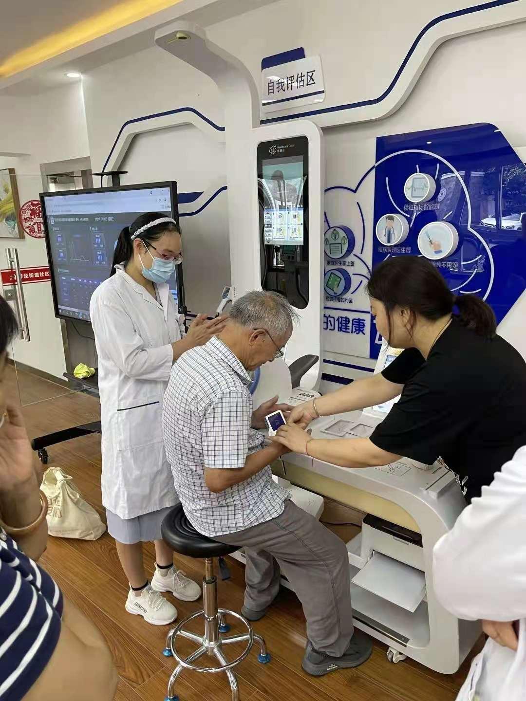 在外高桥保税区外联发的健康服务点内,一台集多项功能于一身的互联网智慧医疗设备格外显眼,这是由外高桥保健中心提供的用于职工自检自测自评的“智慧脑”。来服务点的职工可以通过身份验证、手机号验证、人脸识别、指纹识别等多种方式登录系统,对自身包括血压、血氧、心电图、血糖、尿酸、总胆固醇等11项基础状况进行检测,并形成体检报告。该服务点负责人徐希华向记者透露,每一位职工的体检数据都将保存在云端,用于日后进行针对性的疾患防御作参考,同时,这些数据也可以形成大数据库,为辖区保障类政策的顶层设计提供依据。出于“防未病”的设点初衷,服务点每周都会安排专门的保健医生,根据自检自测自评的数据报告,给予健康指导。