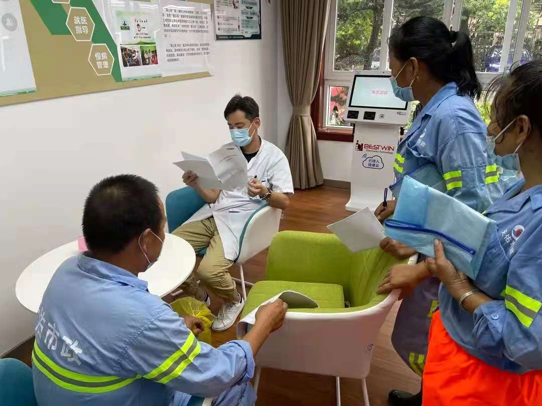 关爱户外工作者的传统也延续到了健康服务点。除了面向辖区内的楼宇职工,洋泾街道的健康服务点还面向户外工作者和当地的居民开放。洋泾街道健康服务点负责人杨乐琛介绍,户外工作者没有很多停留的时间,相比讲座,他们更喜欢针对疑难问题的解答和体检报告解读服务,每次一有医生上门,大家就会慕名而来,已经形成了一个品牌服务项目。