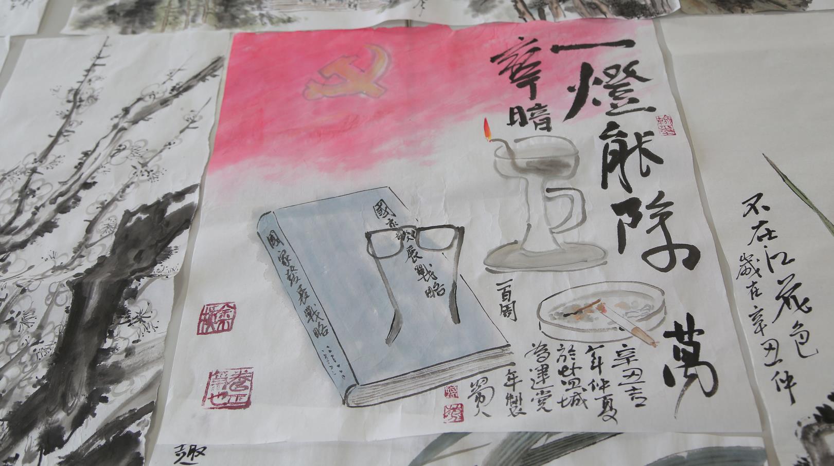 阳光工作室成立后,相继开设了书法班、瓷刻班等班级。后来,经过紧锣密鼓的筹办,监区的绘画班也如期开班。开班后,绘画班的“名气”越来越大,要求报名加入的服刑人员络绎不绝,班内已从一开始4人增加到如今20余人。“这间屋子现在容纳人数已达极限,今年我们想向上级申请更换一间更大的活动室作为教室,再采购一些书画用品,方便班级里的学员创作。”姜伟伟说。