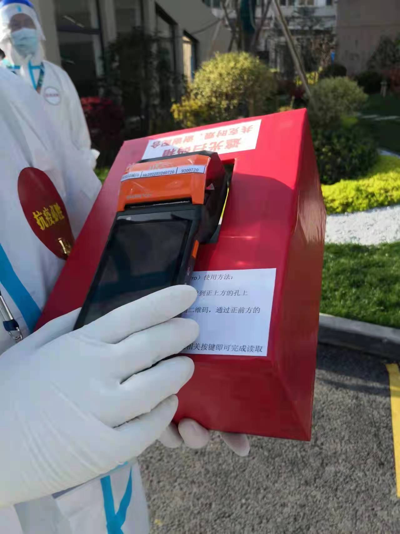 3月31日深夜,郑连博赶工制作了五个“遮光扫码箱”,尺寸更小巧,携带更方便。4月1日,红色的“遮光扫码箱”陆续送到广中,凉城,曲阳,四川北路等街道居民小区使用,为社区核酸检测提供了“小神器”。市民群众纷纷反馈,只需把手机推进“遮光扫码箱”,就可以快速读取二维码,将扫码速度提升一倍以上!“等待时间越来越短了!真棒!”大家纷纷竖起了大拇指。