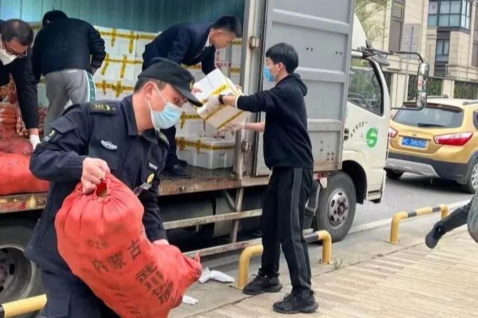 经过一天的休整,还未完全褪去身上的疲惫,4月6日接组织部通知,陆宇焕、吕谷浩、叶子郁三位同志前往岳阳街道参与物资保障工作。从上午8:50至晚上19:00三位同志马不停蹄地先后前往了岳阳街道普政苑小区、高乐小区、华中公寓、方舟园居委会。为四处居民整理搬运蔬菜包及新鲜鸡总计8080份。高温下,从货车中将物资搬运至小区门口并进行清点,一次次的肩扛手提、一次次的举手俯身,三位同志身上的衣服早已湿透,手掌、手指也早已被磨破,打出了血泡。手臂的酸胀、腰背的酸疼没有压垮同志们的决心和毅力。特别是当他们来到小区前进行物资搬运时,都会有居民们不自觉地打开窗户,甚至有的会鼓掌欢呼。有一位抱着孩子的母亲站在窗口,还在幼儿园年纪的小宝贝在窗口大喊“加油!加油!”这声音给原本疲惫不堪的他们带来了无限力量,他们向楼上的小宝贝挥手致意,小宝贝看到后和妈妈一起向他们挥手,加油的声音也愈加响亮。
