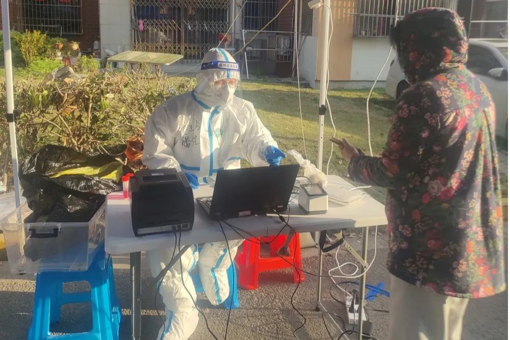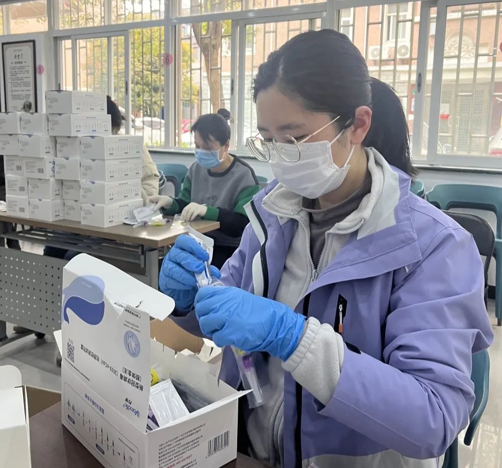 每天5点15分,孙怡在物业集合,按照居委会的分组,3人一组去楼道叫起居民做核酸,对应名单核实,引导居民注意排队间的距离、提醒居民准备核酸码。除了核酸任务,孙怡还在物业分装抗原自测试剂。