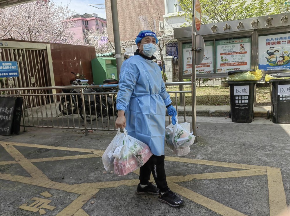 “上海是我们深爱的家园,只有我们每个人的奉献担当,才能共同守‘沪’家园。”封控管理4天来,面对居民们迫切需求的“菜篮子”“米袋子”,郭海勇积极对接居委,自己主动学习研究利用政府发布的购买平台,准确统计居民的购买信息,帮助居民建立购买渠道。打通购买渠道后,他又谋划起“最后100米”的运输保障。想到居民一日三餐的焦虑等待,郭海勇和其他党员志愿者一刻也不敢耽搁,对到货物资进行消杀,争分夺秒地骑上自家的“小电驴”穿梭在小区各楼栋间发放物资。郭海勇说,今天已经来来回回跑了快20趟,为了能让小区居民早点拿到新鲜物资,自己跑多少趟都值。
