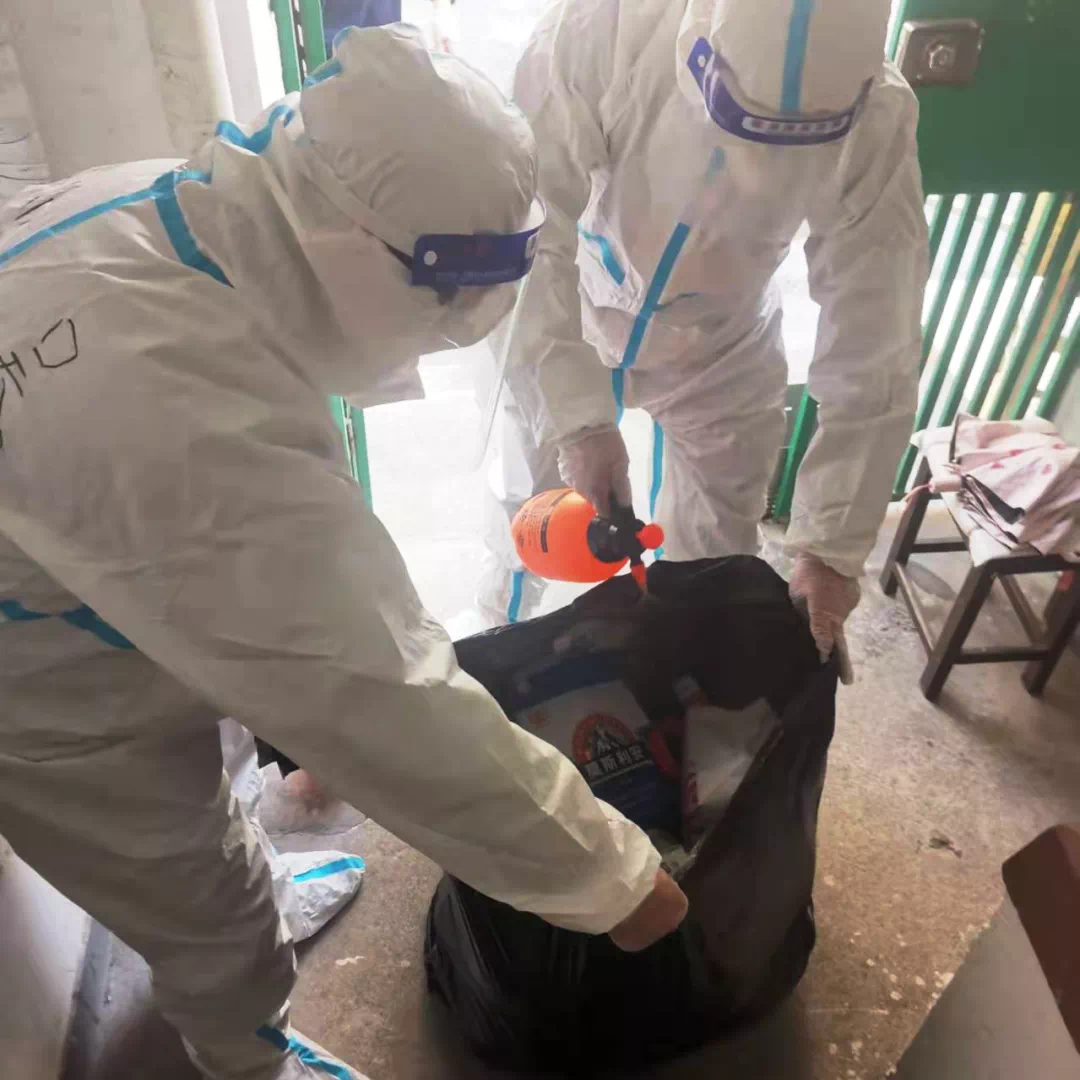 特殊时期,吴珏和牛燮铭每次都是公司有召必回。这次,他们一个台阶一个台阶进行消杀,一户一户收垃圾……天虽凉爽,但半天下来两人还是浑身湿透。吴珏说,最近连续工作,头发没理,胡子没刮,快变成“乞丐”了。