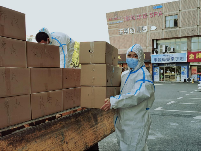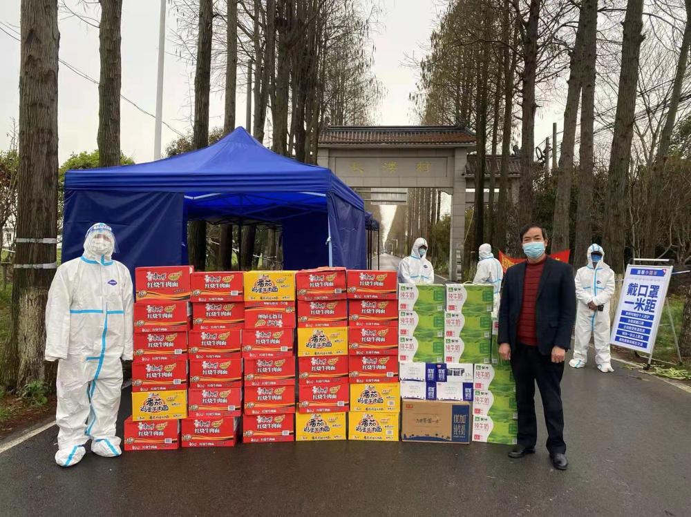 ●上海市劳模金国青(华阳敬老院院长)向车墩镇长溇村捐赠30箱方便面、20箱牛奶,用于慰问一线防疫志愿者↓