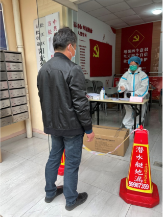 实施封控措施后,社区主要通过线上渠道收集居民的需求,接待处负责处理一些突发情况,同时为社区防疫工作人员提供防疫物资保障。前期,小区有居民下楼做核酸检测采样却忘记带钥匙,接到求助后,接待处志愿者第一时间联系了物业进行开锁破门。看到居委会工作人员不分昼夜的工作,她还特地给他们烧了西洋参土鸡汤,并动员爱人老李一起加入志愿者工作。