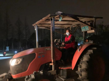 3月28日凌晨,村委会决定封控村域各路口。由于腰泾村东侧出入口众多、管控难度大,为解决村部车辆运力不足的问题,李春风主动请缨,驾驶大马力拖拉机运送路障通宵奋战。