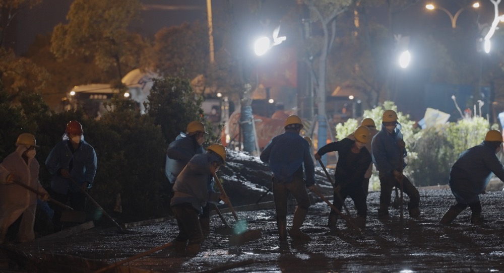 开工首日,临港突降大雨,气温骤降,场地泥泞,施工难度大为增加。中国五冶项目团队克服不利影响,加大了机械设备和人员力量的投入,铺设钢板,打通设备进场道口,场地排水和混凝土浇筑同时进行,经过两昼夜的不懈努力,顺利完成了近5000立方米的混凝土浇筑作业。许多工人为保证施工进度,累了就打地铺休息会儿,醒来后接着干,24小时接续奋战不停歇。