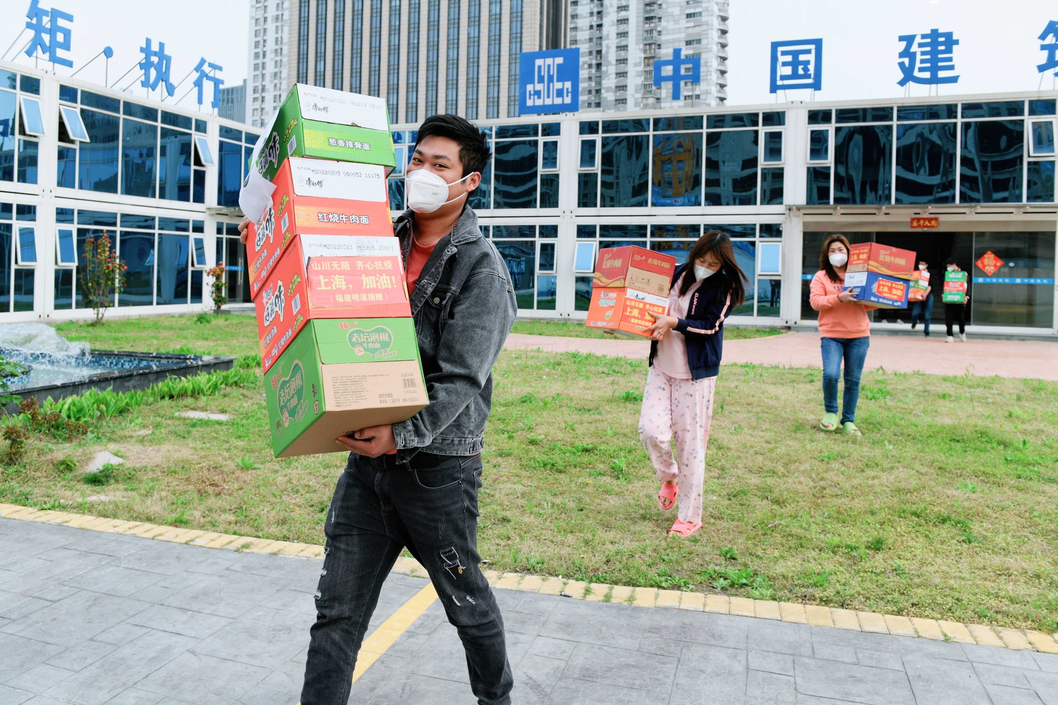 近日,中建八局上海公司安康苑项目生活区内,身着“大白”项目管理人员手持喇叭在每栋宿舍楼下呼喊:“来自莲心明溪捐赠的爱心物资到了,大家按照班组过来领取!”从房间里传出一声声清脆的应答,此刻对于居家十几天不能出门的工友们来说是多么及时诱人。