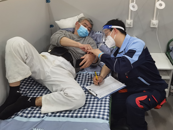 做核酸时帮忙维持秩序、为病友送饭、发放口罩、整理床铺……徐小锋一下子就忙开了。因为一直穿着上海电信的工作服,大家都喊他“电信小哥”。“小哥你是电信的吗?能不能帮我连下WiFi?”发放物资的时候,经常会有老人喊住他,让他帮忙连WiFi,教他们用健康云,徐小锋都来者不拒。