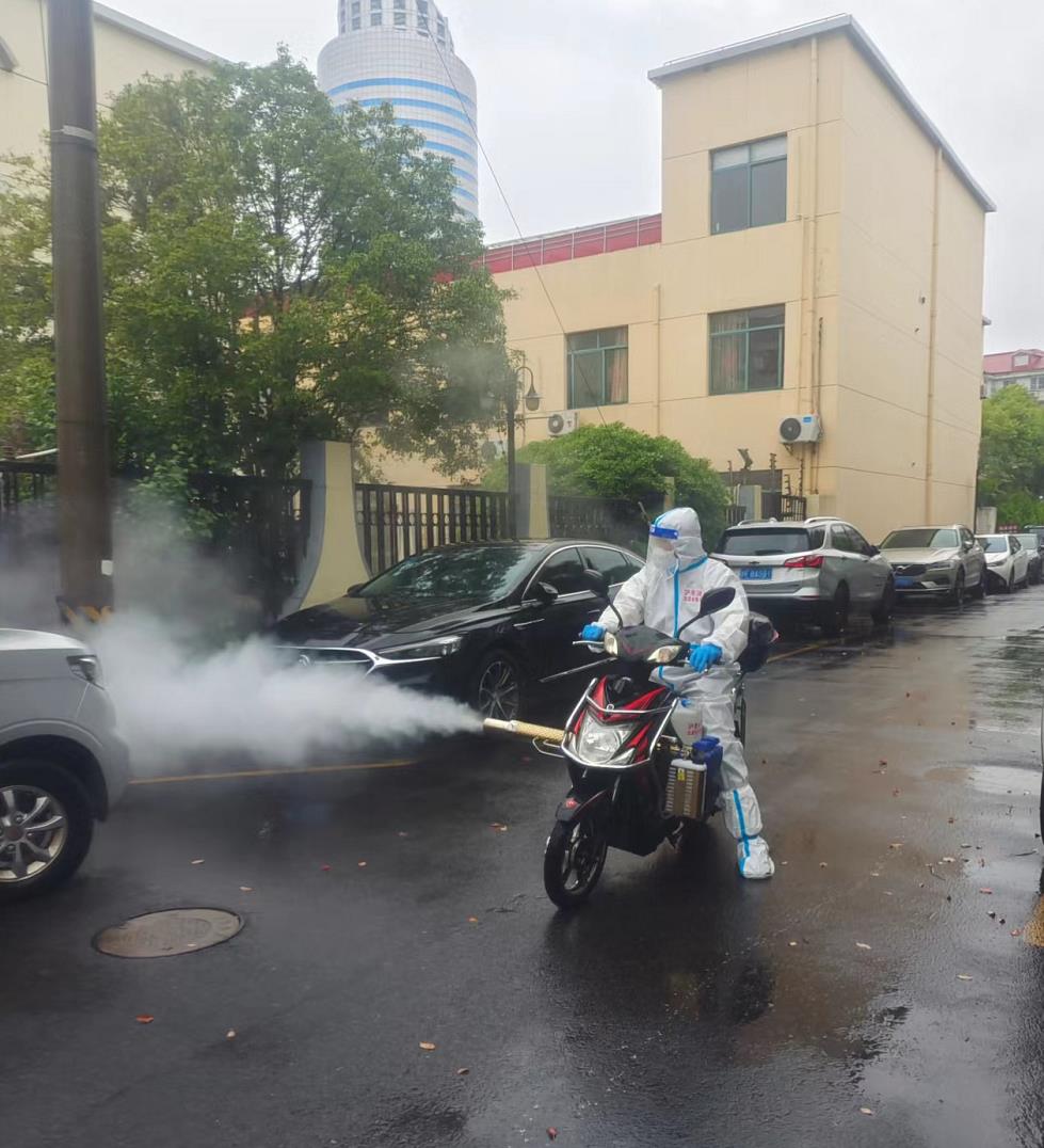 这些日子,徐元平和他的志愿者服务队走遍了街道32个居委、58个小区,他们义无反顾地担起社区防疫消毒的重任。