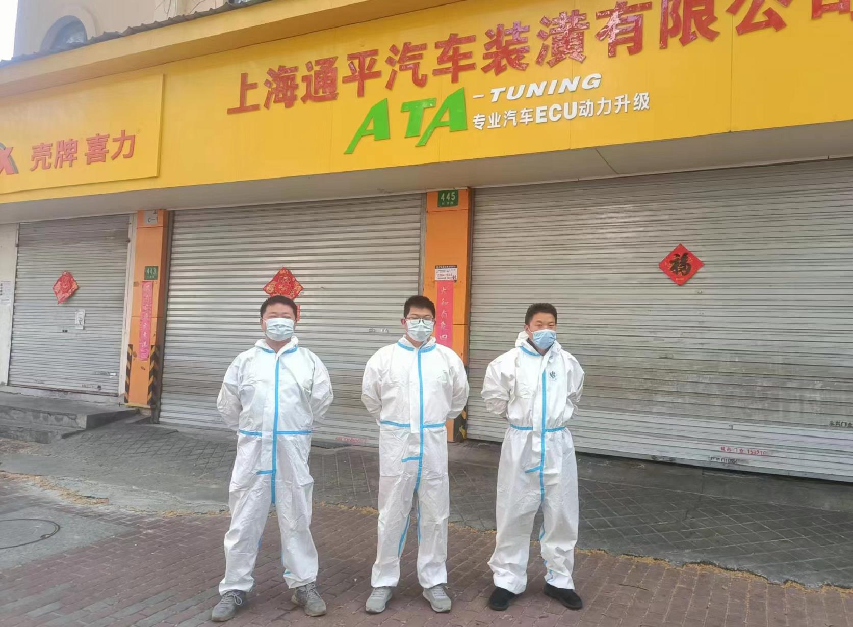 在街道的沟通协调下,徐元平招募了一支由上海骋顺楼宇智能科技有限公司和上海普佑建筑工程有限公司的职工组建而成的消杀志愿者队伍。在得知消杀力量不足时,共产党员、退役军人、上海通平汽车装潢有限公司负责人邢爱国带领员工也主动加入到志愿者行列进行防疫消杀,“沪东防疫消杀志愿者服务队”就此成团。