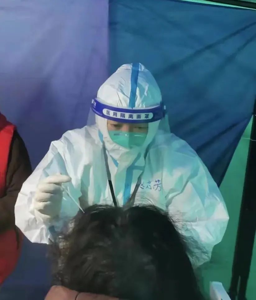 全国先进工作者、九院黄浦分院李琦换药室护士长赵志芳则加入了采样队伍,她运用丰富的临床工作经验,合理布局采样工位,根据现场情况及时调整排队动线。她设置提醒标识,认真做好每一次采样工作,让这身“大白”有了驱散恐慌的“魔力”。