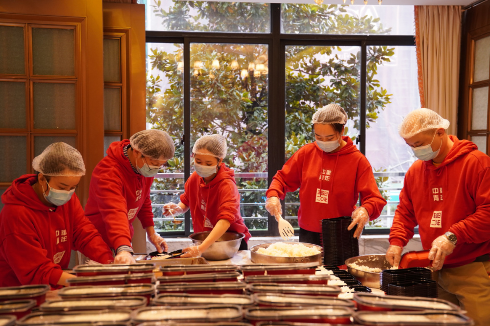 这样的场景,很长一段时间里在大富贵酒楼总店都是常态。周静和她的团队最艰难时,连续半个月没有回过家。因为疫情发生以来,总店接近一半的人员被封控在家,现有人员为了保证门店的正常运营,保证防疫期间能达到“爱心配送”“快速配送”“精准配送”的要求,他们吃在店里,睡在店里,真正把门店当成了自己的家。