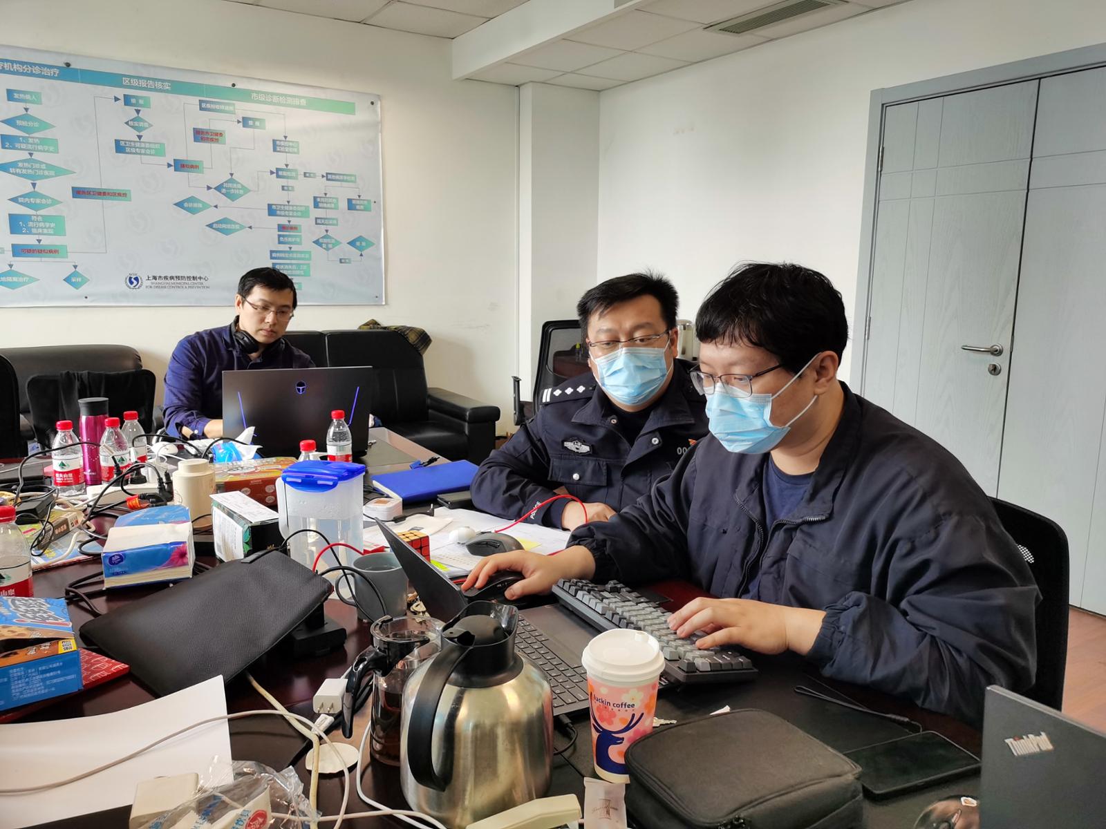 此外,冷培恩、刘洪霞、季晓凡、姜晨彦等同志还临危受命服从组织安排下沉基层连续驻点协助开展疫情防控一个多月,余晴、张玉成和周毅彬三位同志随市督导组连夜奔赴嘉定、徐汇和闵行开展疫情防控督导和指导工作。少部分居家办公的同志,虽然应各种原因封控在家,但是同样利用网络办公的条件,开展电话流调、数据收集、分析研判和报告撰写等新冠疫情防控工作。
