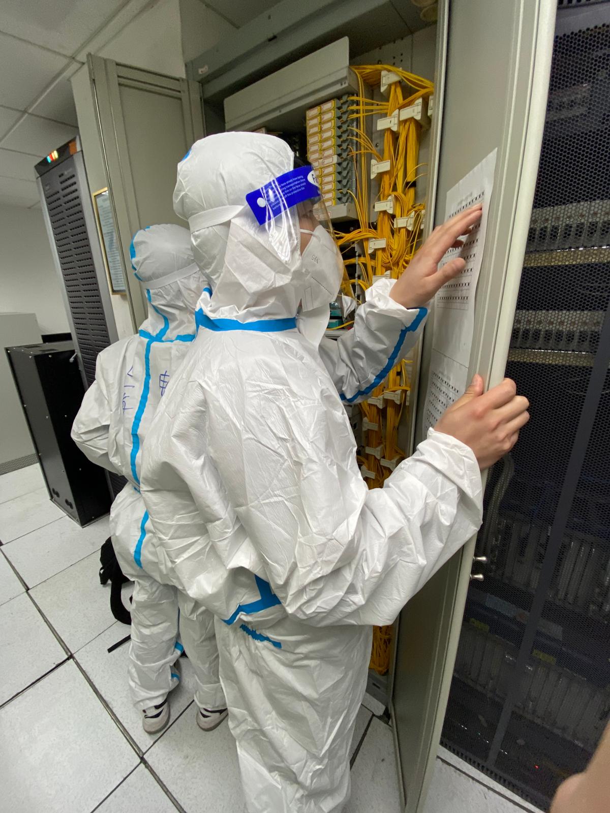 在所有任务中,令每个人印象最深的还是国家会展中心的方舱建设通信保障。面对173万平方米的巨大场景,团队8个人全员出动,包括腿部扭伤的王永睿也坚持全程参与一线测试工作。整整两天时间,他们完成了所有点位的巡检、测试和排摸,反复排除故障隐患,确保方舱指挥部、医疗团队和收治者都能拥有良好的网络使用体验。