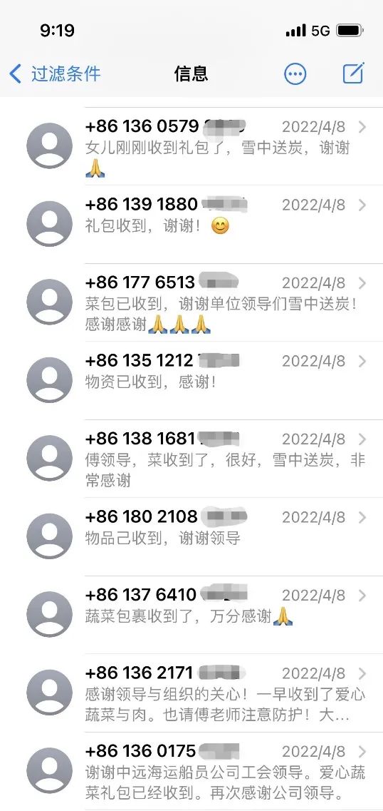 回忆起当时,由于船员的海外时差,半夜突如其来的电话也是常有的事,但这群工会人从未埋怨。“大海航行中有的时候收不到消息,有的船员心里很着急,人在外面,就想给家里弄点菜。” 作为一名曾经的船员,赵坤政非常理解这些兄弟,2400多人的名单,他们不厌其烦地反复核对信息,每一个电话都是耐心细致地解释。