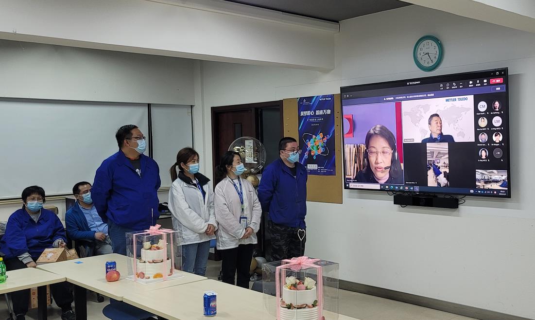 按照梅特勒-托利多(上海)工会往年的习惯,每个月都会为当月生日的员工举办生日会,“正好我们当时驻厂的员工里有4个人这个月生日,很难得。” 曹志敏回忆道,千方百计买到了两个蛋糕、联系公司的管理层和员工家属提前拍摄祝福视频、安排现场抽奖小游戏。4月3日,这场别开生面的生日会让闭环在厂内的员工们特别感动,为彼时严峻的疫情氛围带来了些许轻松。