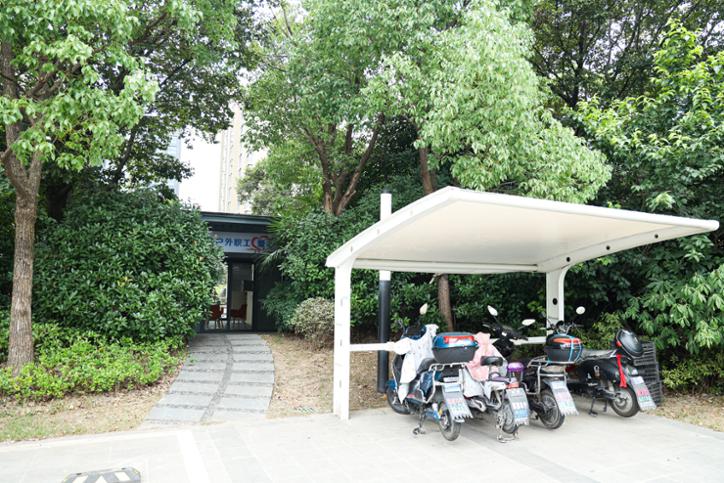 同样的,在西虹桥党群服务中心户外驿站里,虽然面积不大,只有约10平米的空间,但这个接力站同样五脏俱全,同时在接力站门口贴心地设置了数个电瓶车充电桩。负责人刘海燕对记者说:“我们这里会有不少环卫工人开着电瓶三轮车来休息的,所以我们当时就设想,他们在休息的时候,不妨也给车子充充电,方便他们后续的工作。”在接力站中,一位环卫工人刚刚结束上午的工作,他熟练地从冰柜里取出矿泉水,“我们自己也可以带些喝的,提前放在冰箱里,天热了,干完活儿来喝一口冰的,特别舒服。”