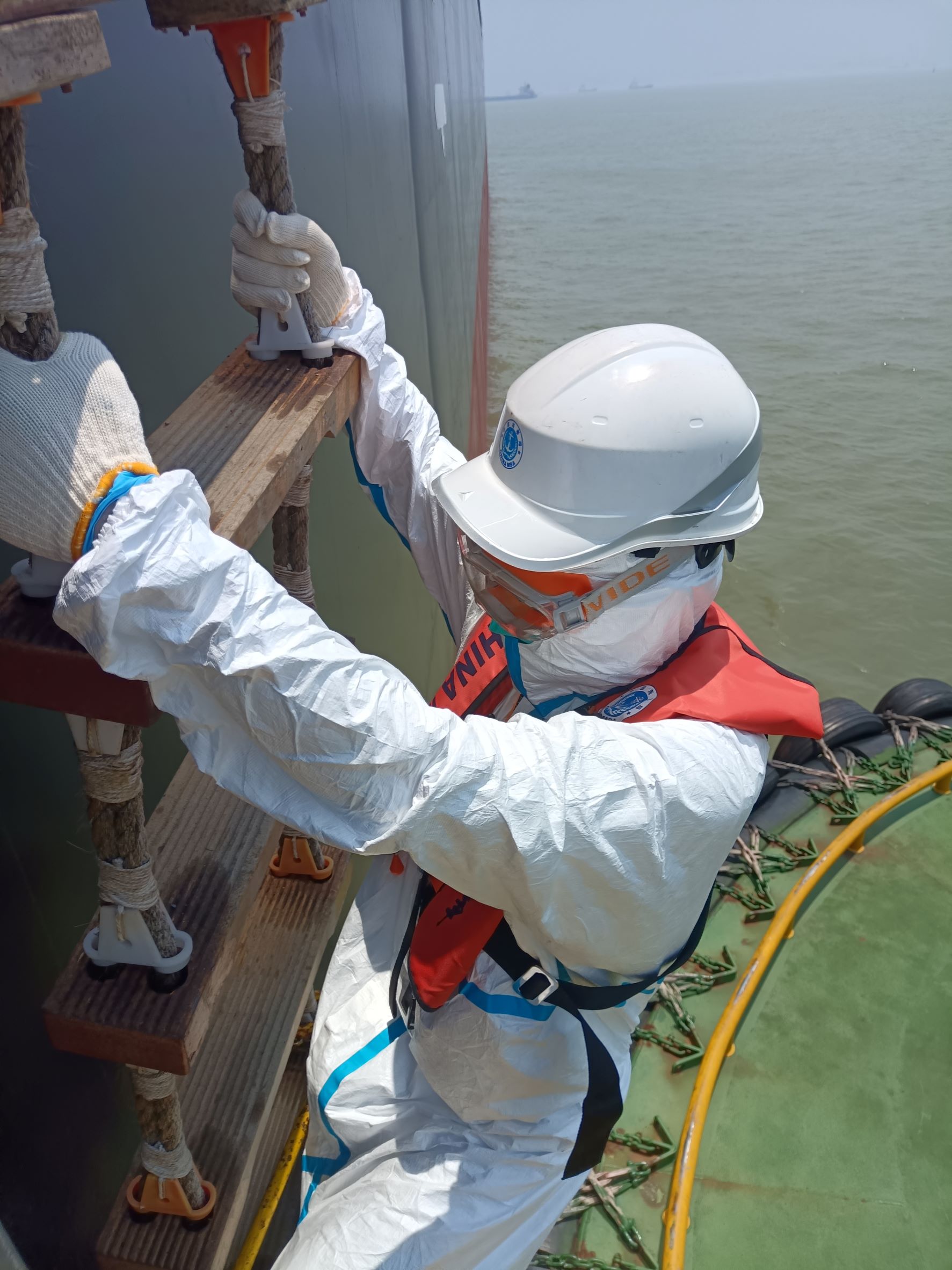作为专班一员,邱学刚主动请缨,并于7月11日前来报到,开展为期35天的PSC检查。攀爬数十米高的船舶干舷对他来说已是家常便饭,虽已身经百战,但恰巧碰到近日的连续高温天气,炙热的船壳板与摇晃的引航员梯仍使他登轮时变的小心翼翼。由于不能摘下防护罩,登上船舶的那一刻他已经气喘吁吁,有一种缺氧的感觉。