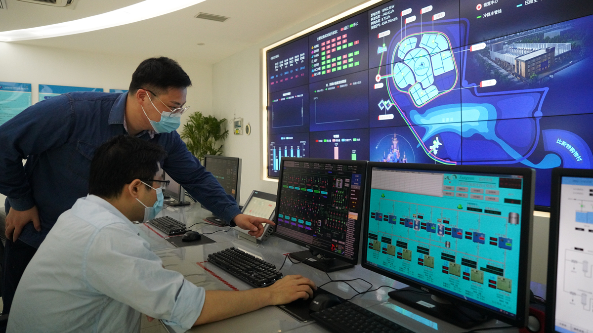能源站有着绿色充电宝之称,通过大温差制冷技术和水蓄冷技术,空调冷热媒水进出口温度可实现9.9℃的大温差,从而降低冷热负荷流量和系统整体输送能耗。如今,上海每天触发高温预警,园区内的娱乐设施、酒店等对供冷需求量较大。“我们这里会根据监测数据对冷水机等设备进行调整,保障每一位游客舒适的游园体验。”顾凌玮说道。