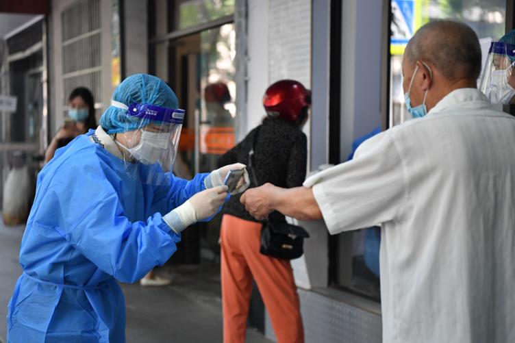 接过核酸管,与别的志愿者一样,王君华熟练地指引居民扫码、叫名字,流程一气呵成。“身份证交给我就好了。”遇到行动不便的老人和不熟悉操作的外地人员,她一步步引导对方。