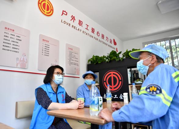 “原本这附近的接力站是在一家福利彩票店面内,户外职工进出并不多,之后福利彩票店关门了。而这个休息点坐落在繁华街道的垃圾点旁边,原本是专属清洁工的,够‘接地气’,改造升级后,能让其他的户外职工也能凉快凉快。”她说,像这样单独开辟出来的户外职工爱心接力站,南桥镇总共有6家。