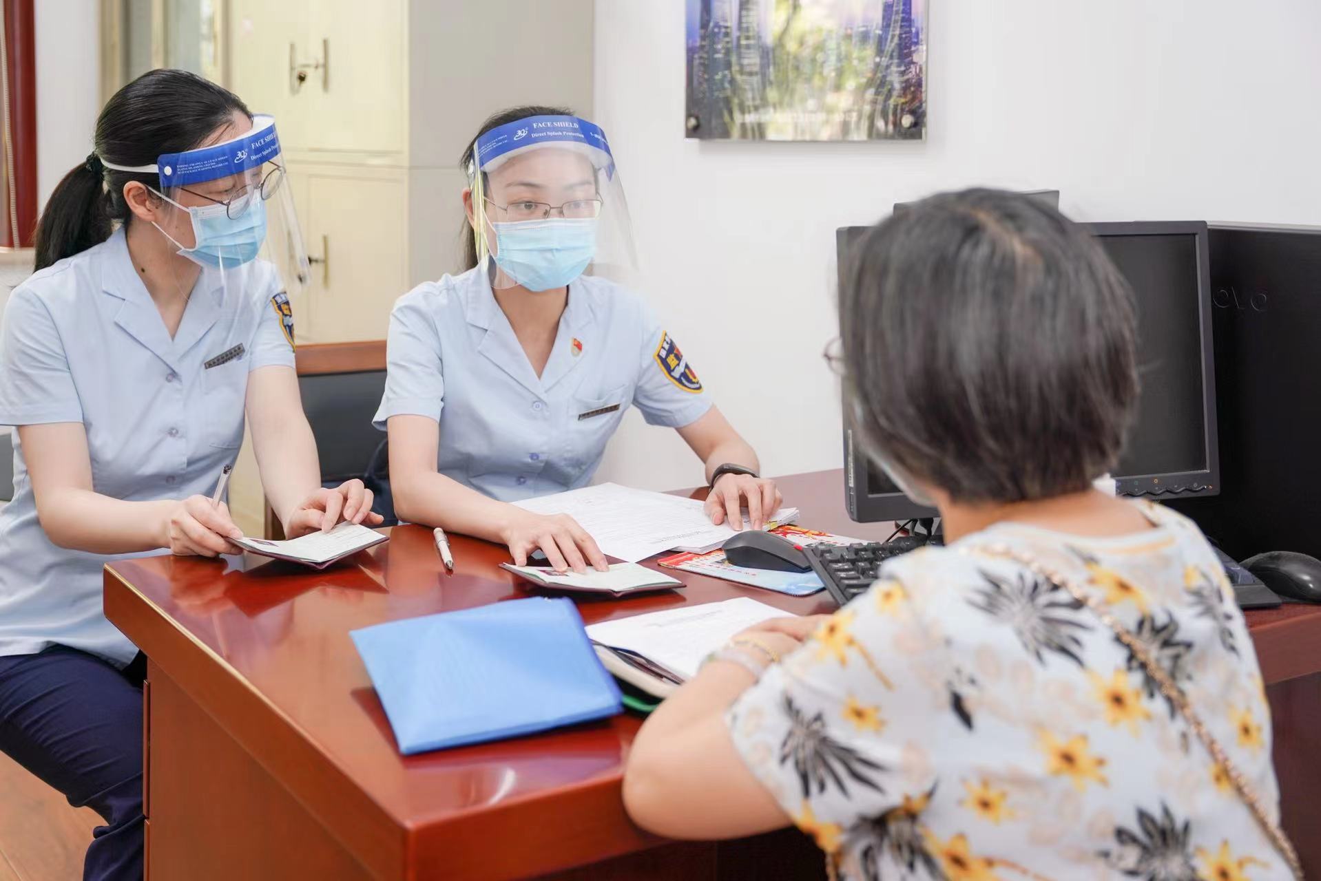 巾帼队员们的“火热一线”除了在现场,办公室也同样火热。面对老百姓的疑难咨询、情绪来访,执法大队巾帼团队总是做到一张笑脸相迎、一把椅子相让,细心为当事人服务,直到当事人听懂了满意了为止。有时,她们连一口水都来不及喝。