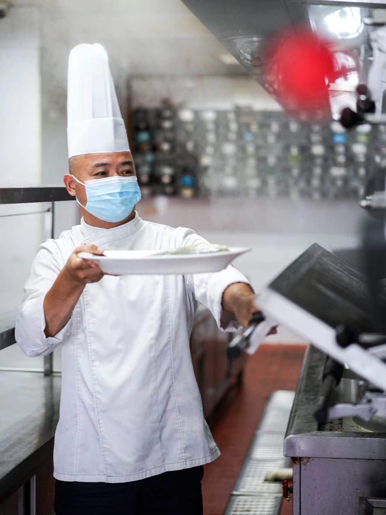 “正值晚餐备餐时间,厨师们正在对鱼肉蔬菜等进行加工,部分食材已下锅进行预烹煮。”刘根标指着几处烧旺的炉火向记者解释,这个300多平米的厨房里,分为热菜、冷菜、面点、洗碗间等不同区域,核心的热菜厨房有10个炉灶、2个大蒸笼,整个后厨有50余名人员各司其职。