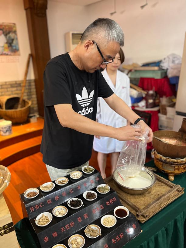 吴生忠也聊起了自己刚进厂那会制作梨膏糖的经历,“那时候真的很苦,生产车间里根本没有空调,熬糖用的都是煤炭,一整天下来,人被熏得墨墨黑。由于没有温度计,还要用手去搭130℃的糖面,锅里的糖汁有时候还会溅出来,我的手臂上都是大大小小的疤痕。”据吴生忠回忆,以前每天生产500斤梨膏糖需要重复传统的11道工序流程40余次。160余年以来,梨膏糖的配方从未改变,制作方法仍旧遵循古法进行制作。