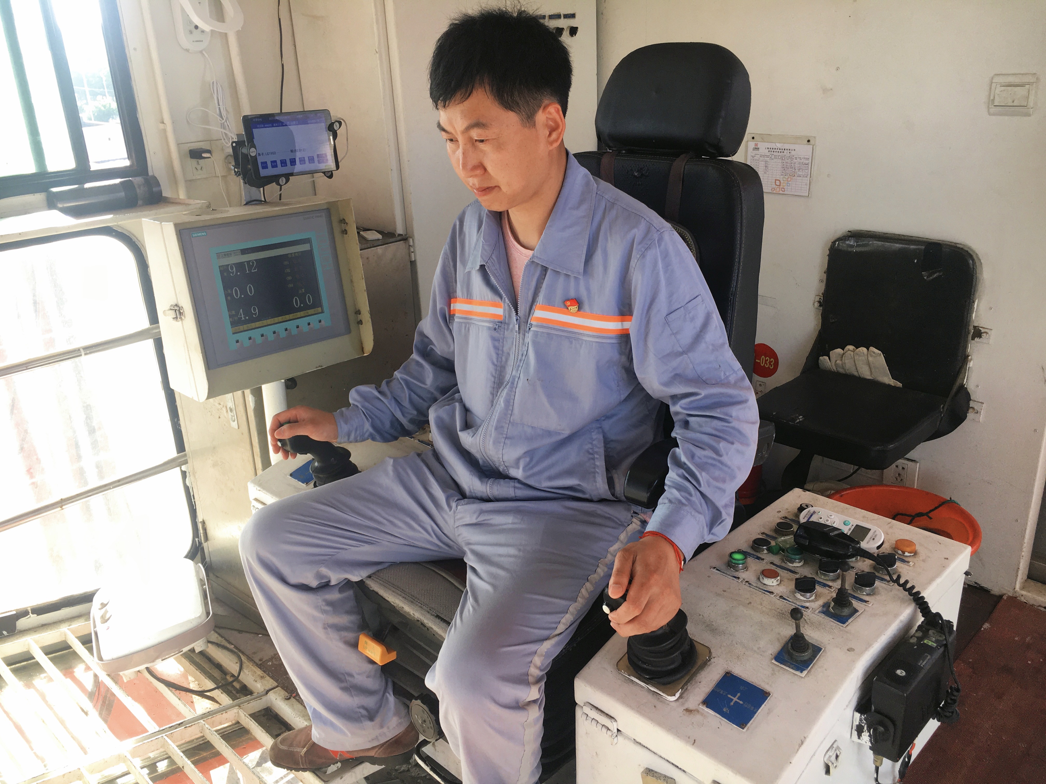 船只进港、集箱吊装、垃圾转运,作为申城生活垃圾集装卸运地的老港码头,每天都是一番忙碌的作业景象。80后倪陈将是城投环境老港废弃物处置公司的一名桥吊司机,曾是军人的他笑着说,“现在高空驾驶室就是我的‘作战场’。”