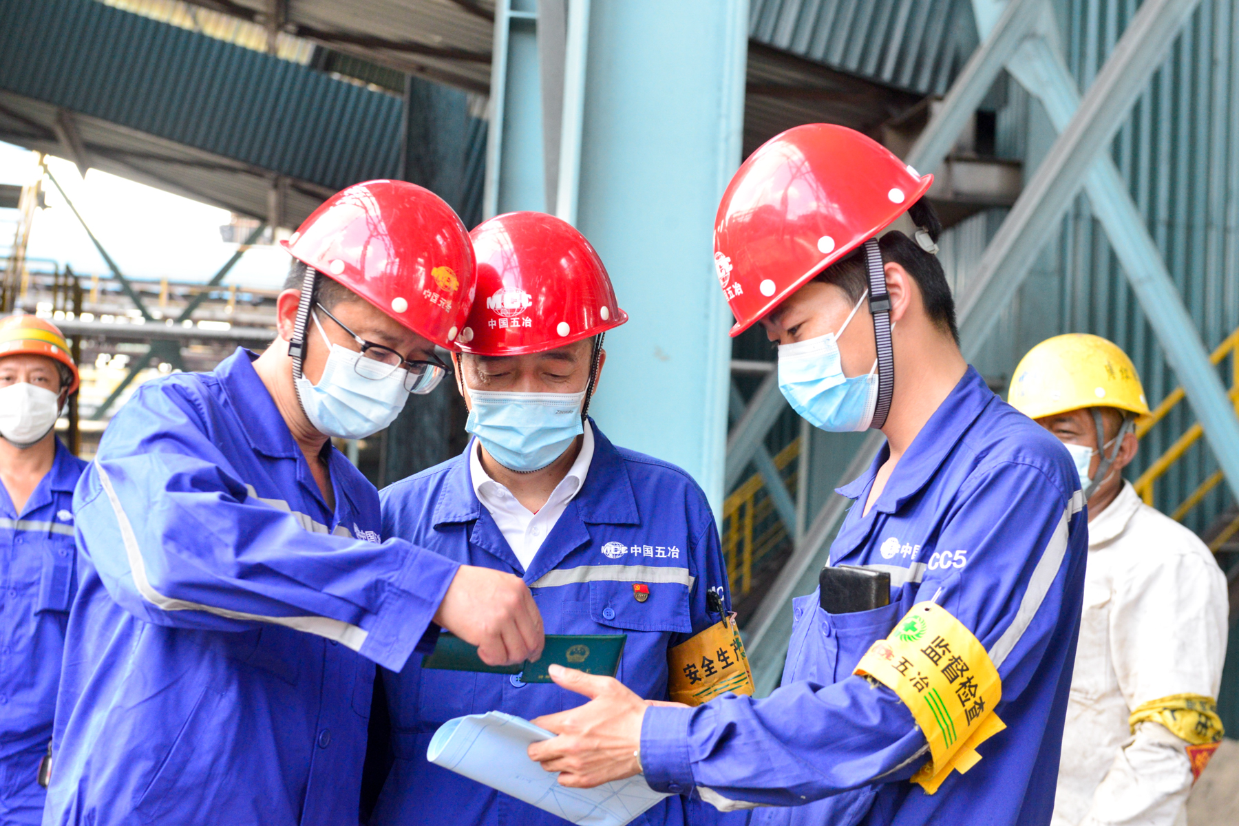 中国五冶宝钢煤处理项目安全管理人员正在检查现场施工人员持证上岗情况,严格把关高温天里的安全生产。摄影/孙亮(中国五冶集团有限公司)