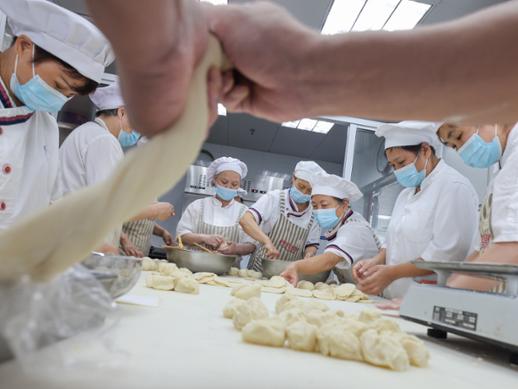 每天早上5:30左右,食堂师傅就要为早餐开火了,等早餐高峰期过了,大家就开始做月饼,揉面、包陷、烘烤,每一道流程都包含着师傅们的满满用心。用心从选料开始,鲜肉月饼的肉采用的是金锣肉,肉买回来之后洗干净,师傅们切肉、绞肉、调味。刘志勇说,为了确保肉的质量,食堂不购买加工更加方便的肉糜,全是手工现绞。