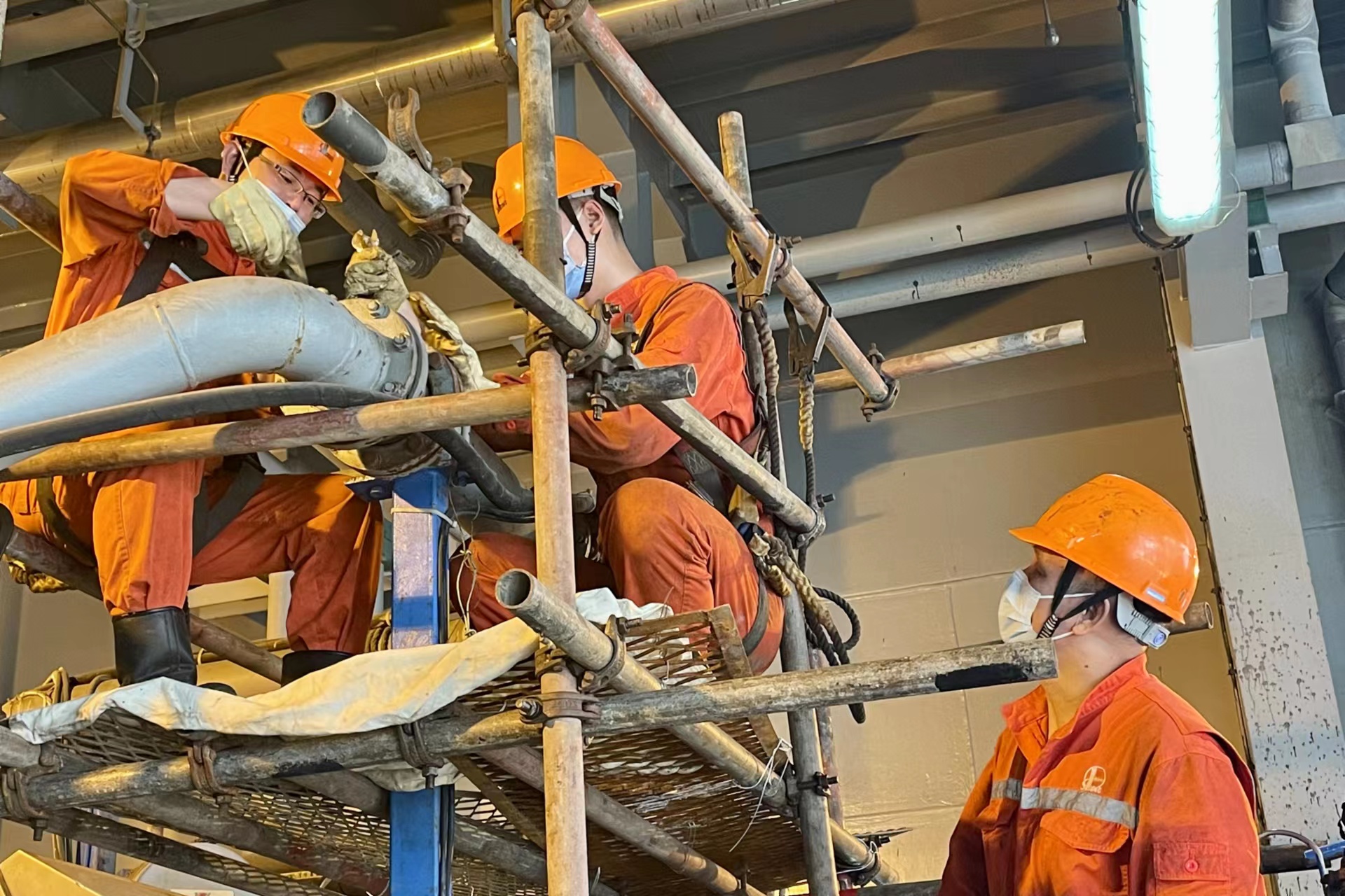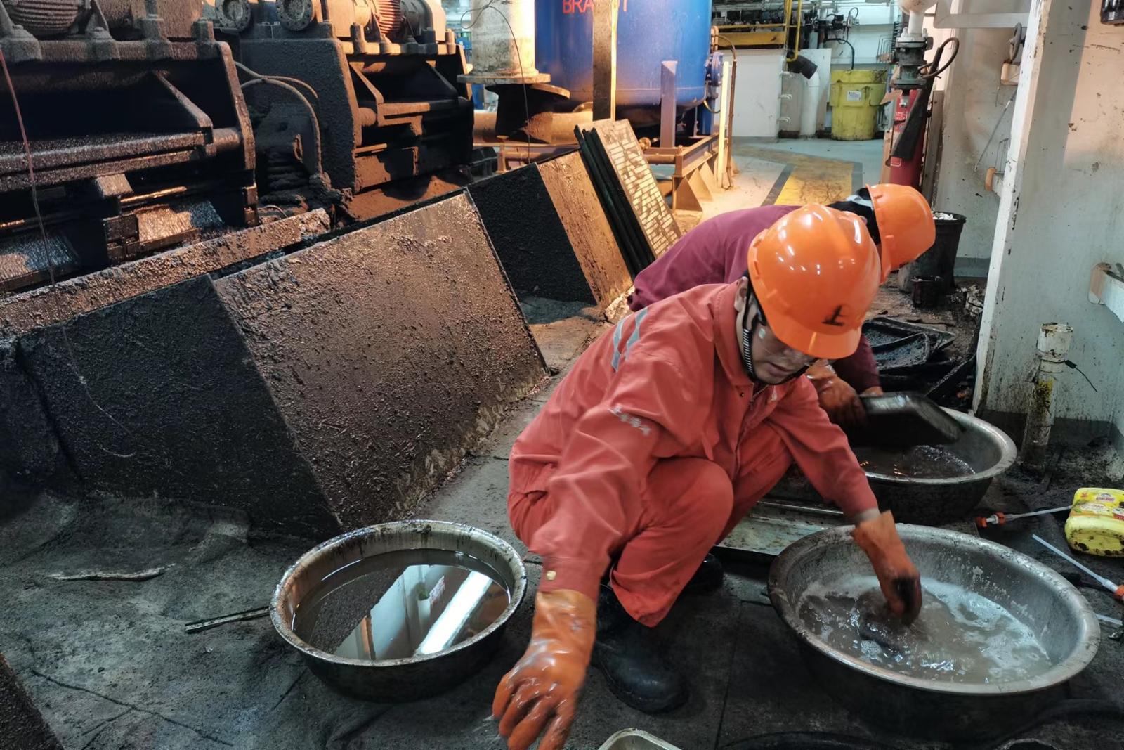 勘探七号,东海,固井人员正在维护保养固井撬。