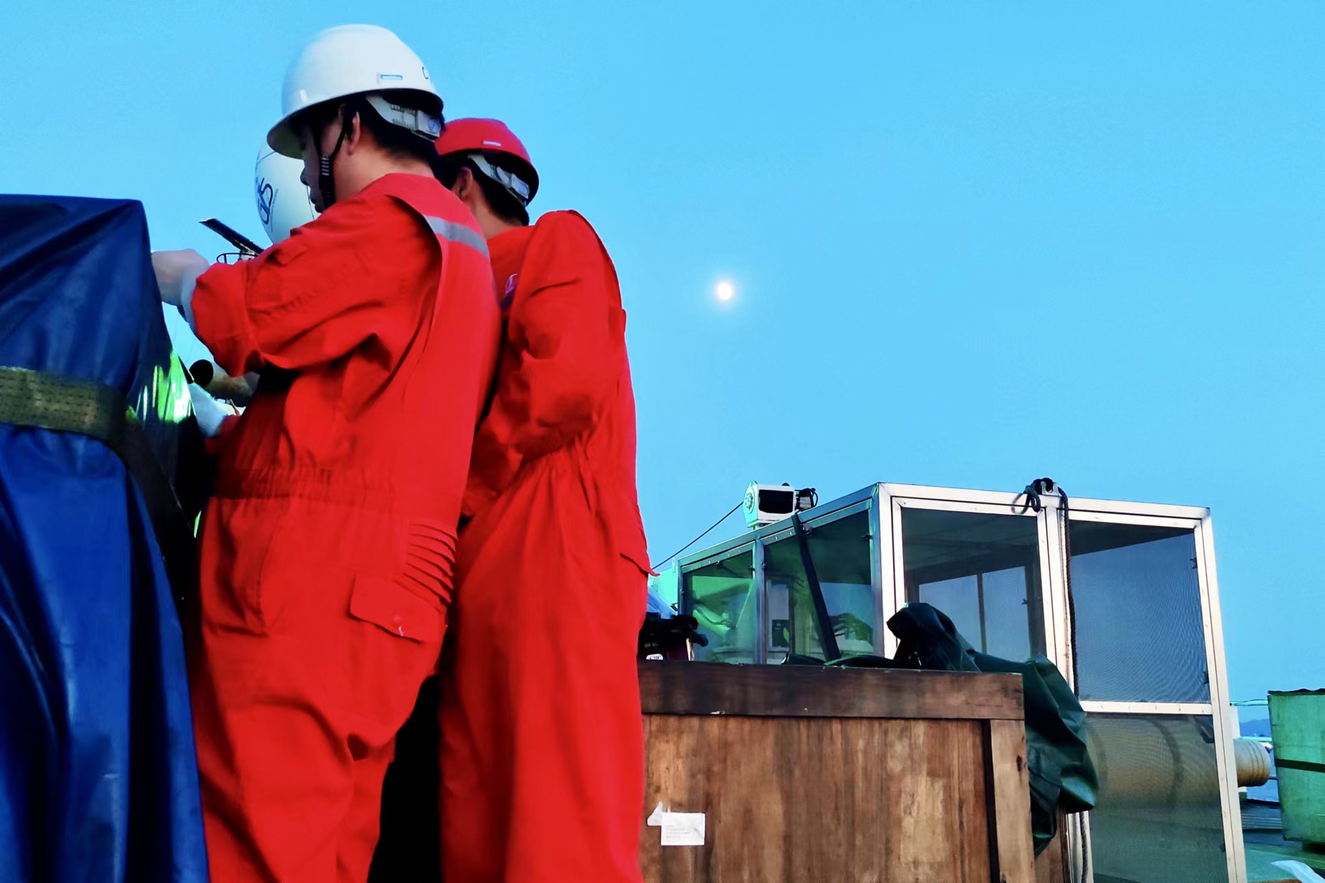 发现2号,舟山锚地,震源组正在进行物料清点。