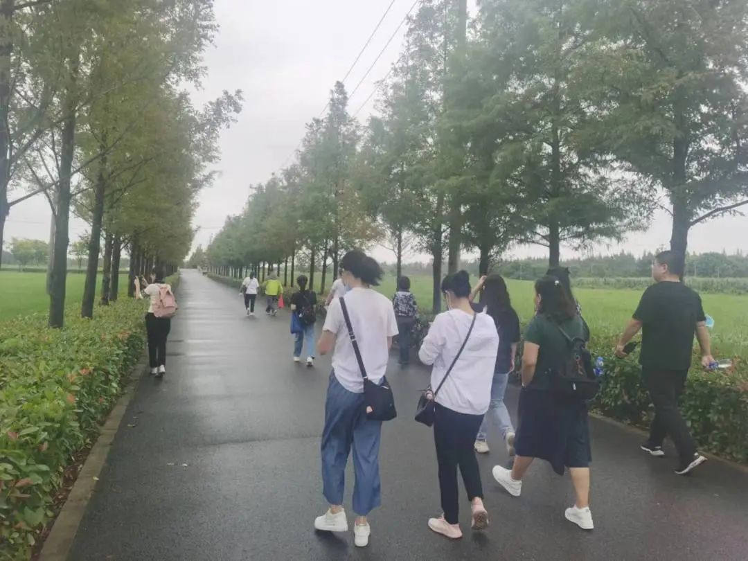 (来自淞南镇的社区工作者们正徒步走在嘉北郊野公园内,欣赏原生态田野风光。受访对象供图)