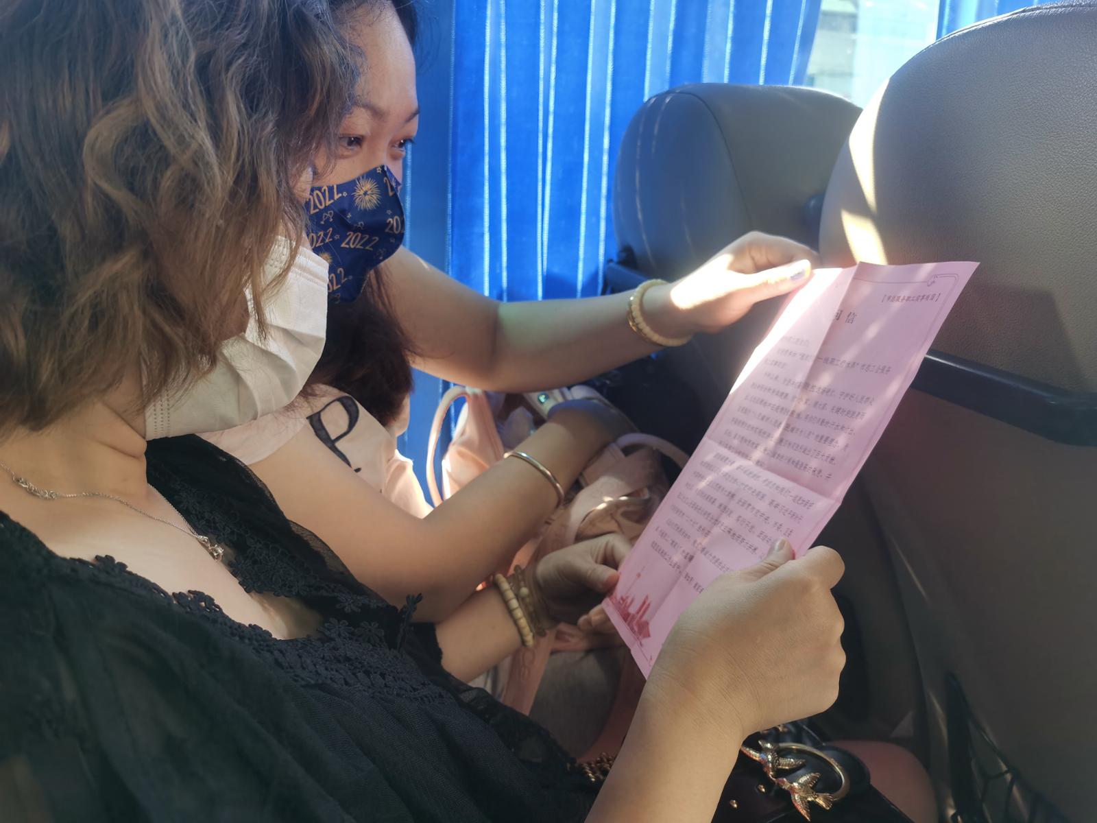 (今年,街镇总工会为疗休养之旅精心设计了“五个一”彩蛋。图为一线抗疫职工正在阅读慰问信。受访对象供图)