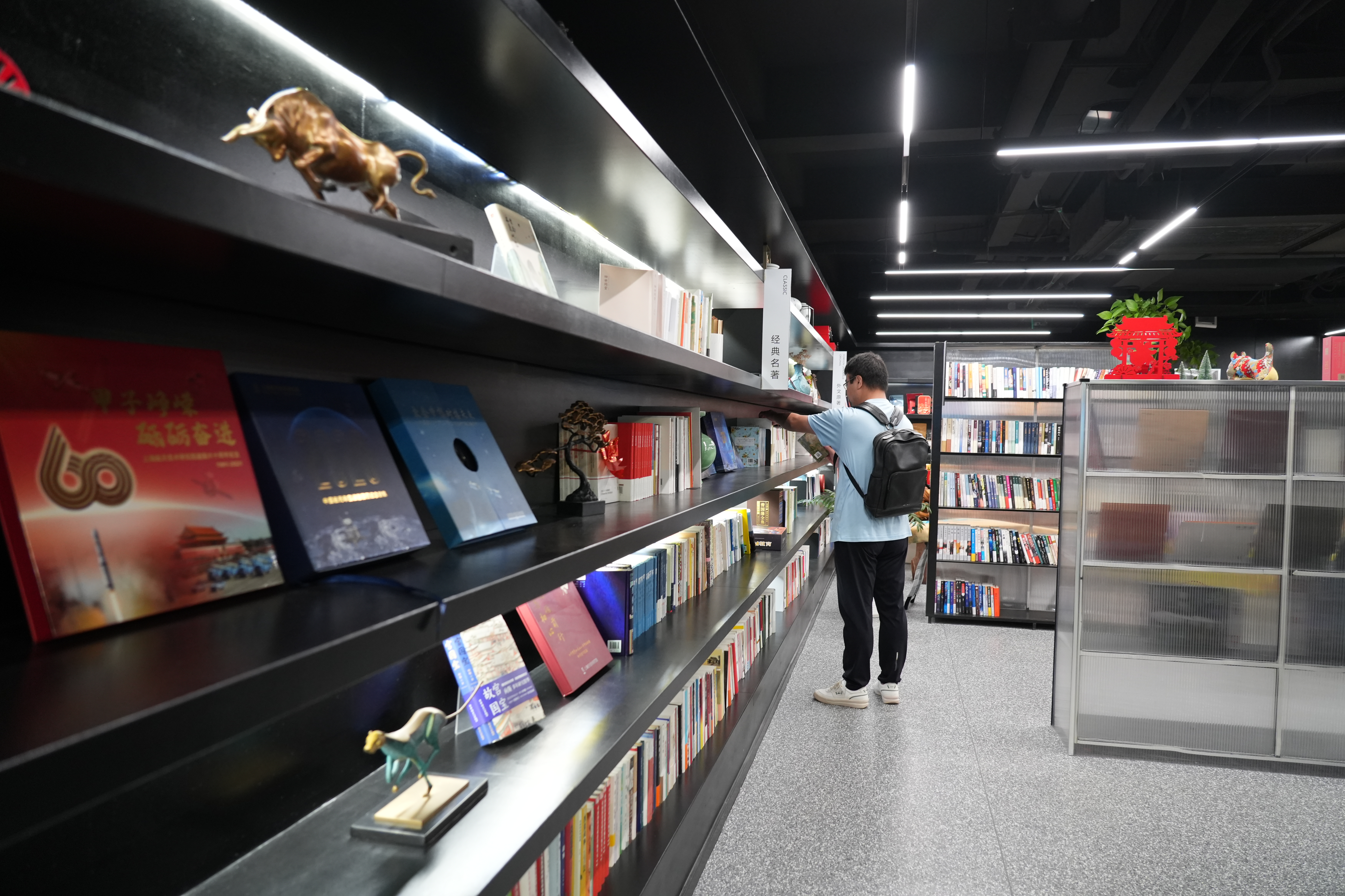 天问书局位于航天双创中心内,是集创业咖啡、阅读休闲、活动路演、讲座沙龙于一体的综合性休闲空间。书局共有两层,藏书大多为航天局工会所捐赠,涵盖了人文历史、经济、哲学、航天等领域,俨然一个充满航天元素的小图书馆。除了海量书籍外,还设置桌椅沙发、小型会议室,不仅可以供职工到此休闲交流,还可以供园区内各公司到此举办各类活动。
