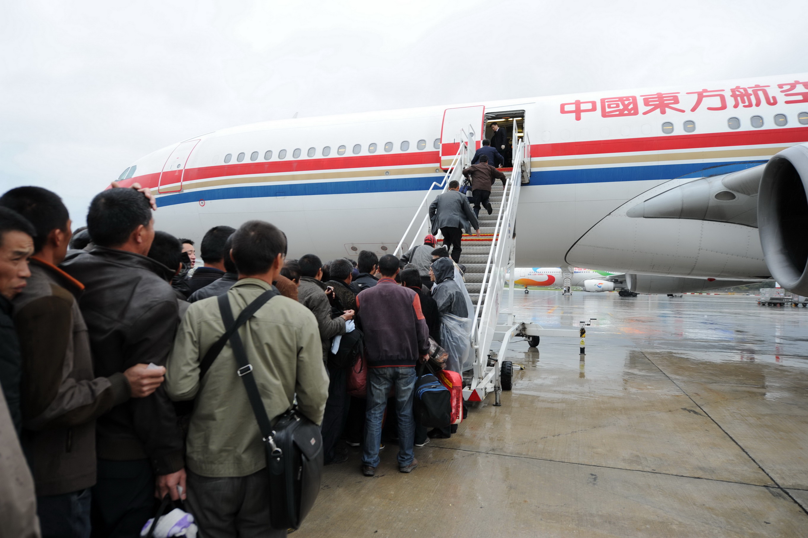 几经周折,航班终于开始上客。许多人没有托运行李,因为不少惊魂未定的同胞是从战乱地区逃出来的,只来得及带一点随身物品,也没有办法按照通常流程打印登机牌,只能靠随机东航地服人员现场手写、记录人数。