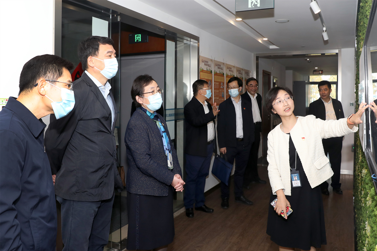 张颖(右一)在现场向嘉宾解说绿色建筑技术体系。受访对象供图