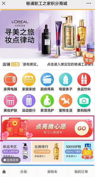 今年,为呼应职工的需求、进一步提升困难职工生活品质,杨浦职工之家积分商城“职工心愿超市”正式上线,困难职工实现“微心愿”更加便捷。