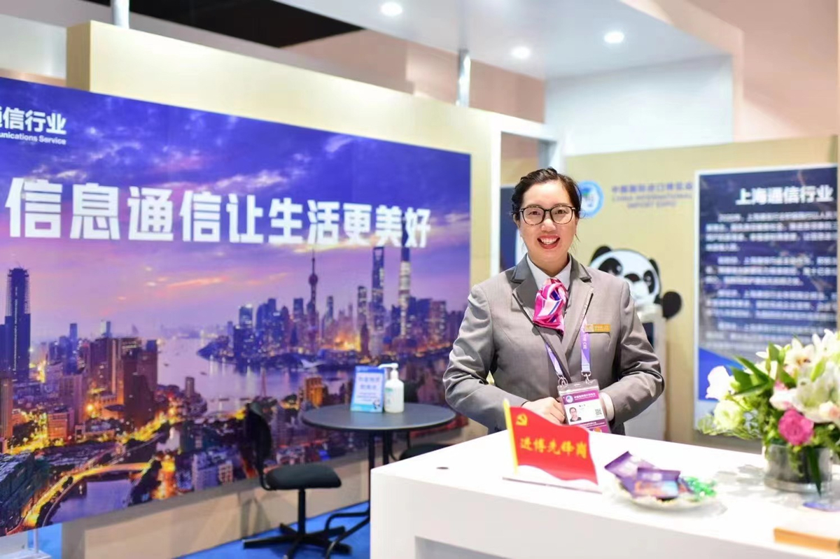 青浦电信局“小芳”进博服务班组今年将继续在展会现场为中外宾客服务。受访对象供图(资料图)