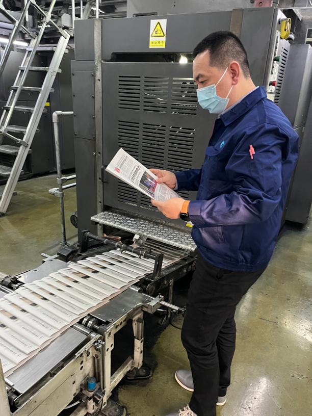 为确保现有印刷设备持续发挥高品质印刷性能,并不断满足日益提升的质量要求,近年来,上报印务公司陆续引进使用了屏幕打样、自动套准、墨色预置、分光密度仪等新技术、新设备,提升自动化等级和印刷流程动态质量管理水平,定期组织员工召开质量阅评会、参加专业技术培训,提升岗位操作技能。上报印务工会也定期举办各项岗位技能比武竞赛,今年10月组织开展“喜迎二十大、劳动展风采”技能竞赛,在公司全体员工的积极努力下,确保了二十大期间人民日报、解放日报等各种党报刊物的安全优质出版。