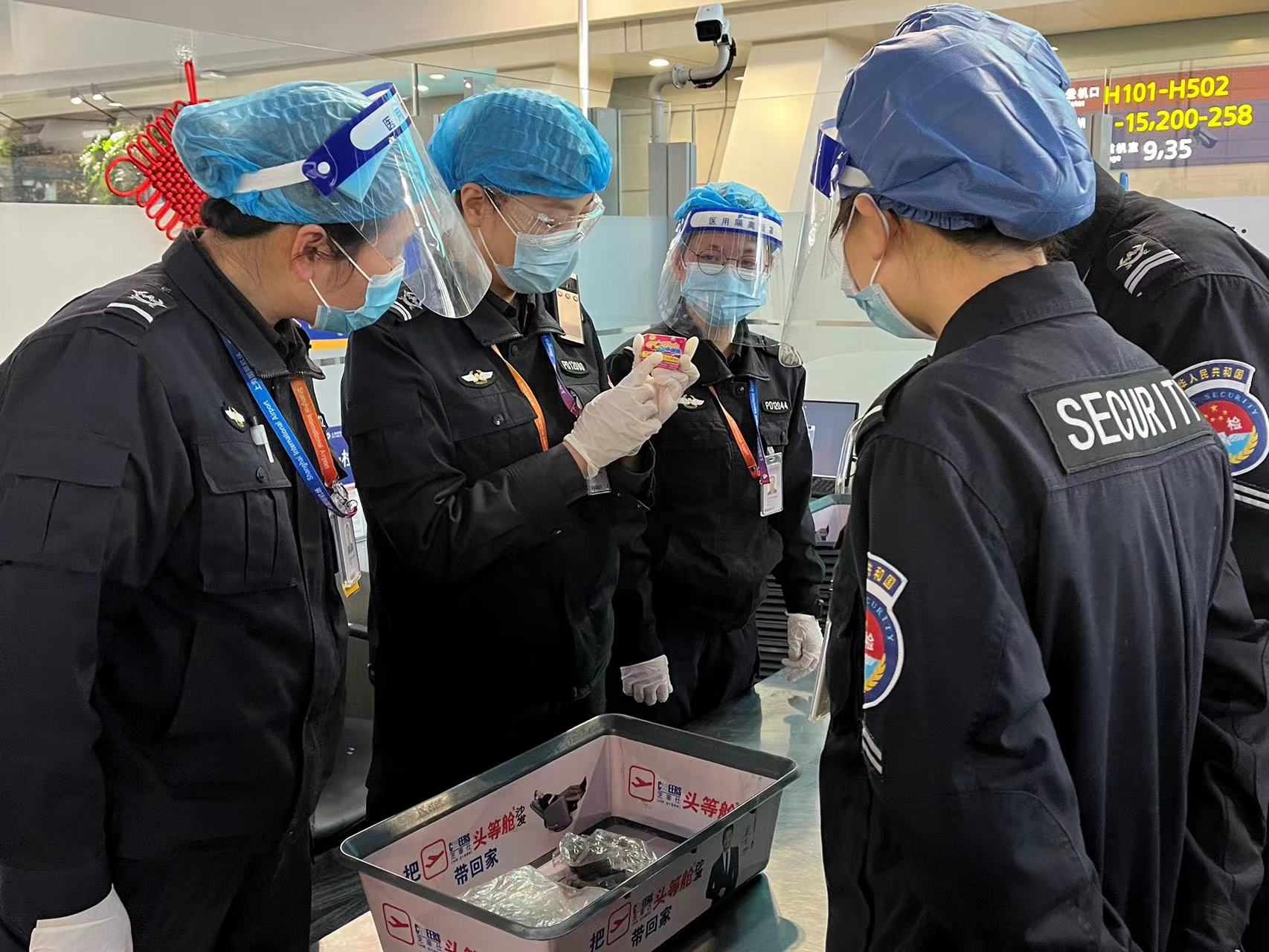“安杰”班组共有41人,目前主要负责T1航站楼、S1卫星厅出港旅客的证件、人身检查以及随身行李物品检查等工作。疫情期间,由于旅客需要查验健康码,不可避免地会对安检效率带来影响。班组长顾懿雯向记者介绍,为了使旅客过检更加顺畅,班组根据旅客携带行李的数量,开设了单件和多件行李专用通道。班组还创新制定了“ICH开箱工作法”,分别代表了告知(introduce)、选择(choose)、处理(handle)。把安检的相关规定,如哪些属于违禁品等告知旅客,然后以菜单形式把解决方法提供给旅客自行选择,最后由安检员协同处理。“这样一来,不仅可以节省组员沟通和处理的时间,还能提高旅客的通行速度。”