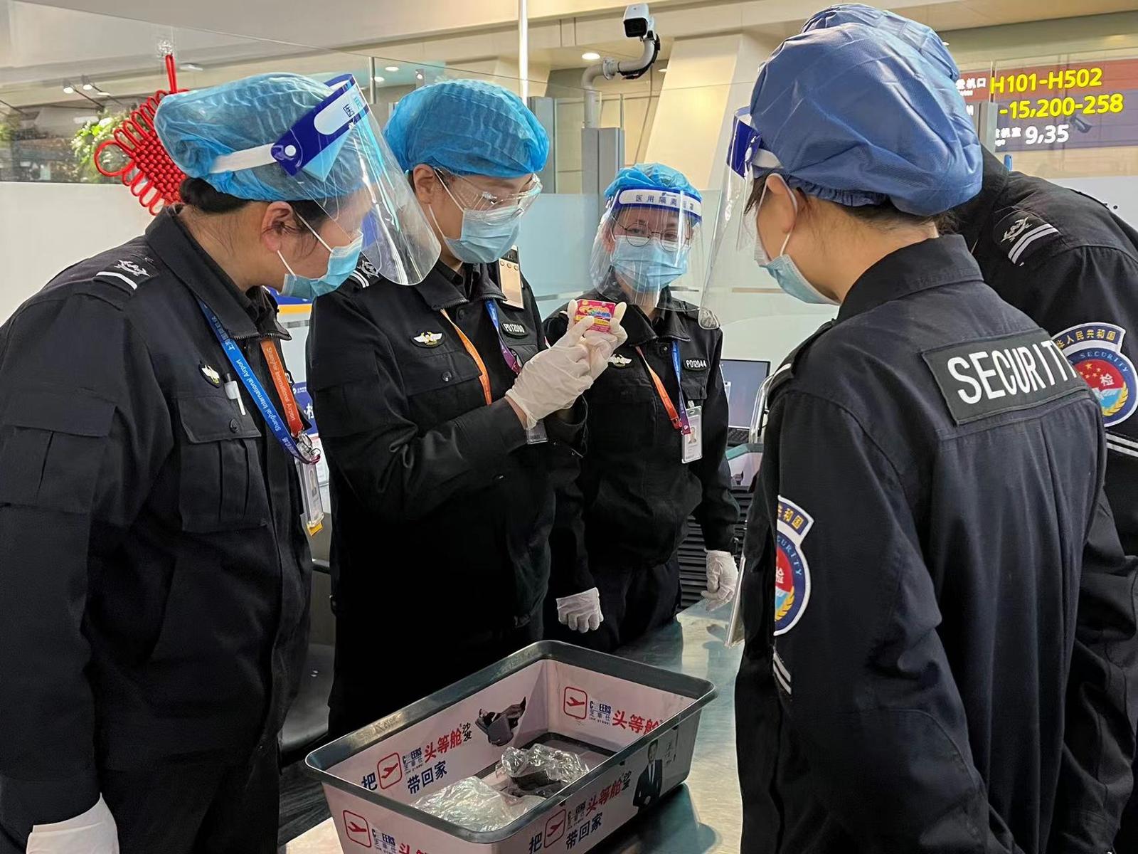 机场安检通道又分为验证、前传、人检、开机、开箱和辅助6个岗位。疫情前,面对大客流挑战,班组试点了“3+1”创新通道,即选取3条安检通道,在每条通道6名工作人员的基础上,再额外增加一名“机动”队员。通过“及时补缺”,避免个别岗位出现客流积压等情况,提高了30%至35%的放行速率,也有效缓解了班组成员的工作压力。