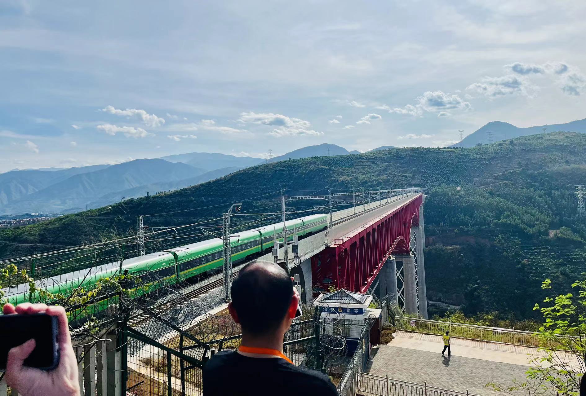 李东的本科毕业论文是对中老铁路线路和站点开展ar展示探索,通过虚拟现实展示铁路全貌,研究生阶段,他的课题方向是中老铁路养护与维修。作为一项非常重要的研学实践活动,李东很幸运地参加到了对于中老铁路的探访。今年的这次研学实践活动已是李东第二次参加,这一次重新回到这条连接家乡的铁路,他能够亲眼见到动车在铁轨上飞速奔驰,更为重要的是,这条铁路像一条纽带将中老两国人民的心紧紧地连在了一起。