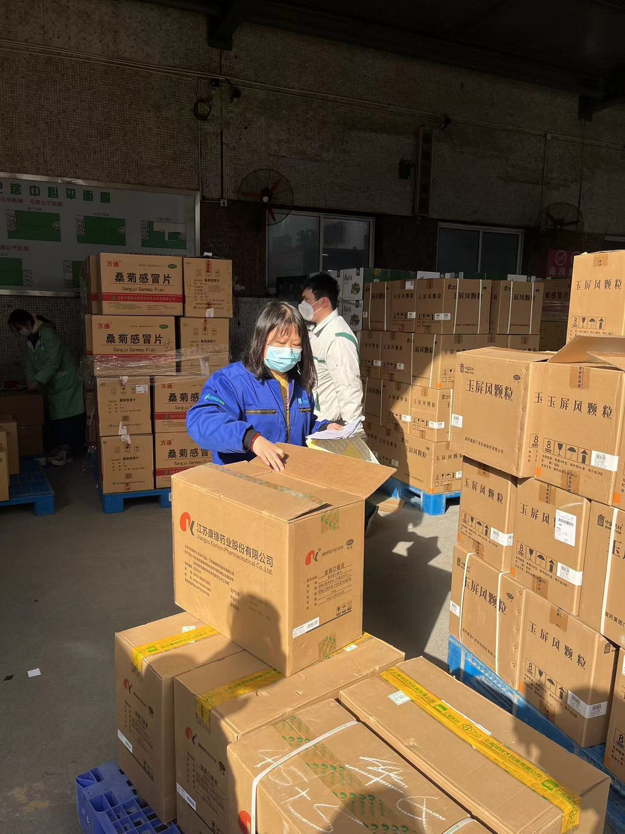 在优化疫情防控措施出台后,治疗感冒和发烧的药物成为市民争相购买的对象。从上周开始,沪上各大药房对于此类药物的订单就呈现激增状态。今天下午,记者来到位于柳营路517号的华氏易美健大药房,发现清热解毒类药物的玻璃柜内已经空空如也。而桌面上也仅放着零散的几盒小儿感冒颗粒和川贝枇杷膏等。在该药房的背后,便是供应上海480余家华氏大药房以及部分社会药房药物的仓库。记者随即在工作人员的陪同下进入仓库探访。从上周开始,该仓库便开启了早6点到晚12点的“白加黑”模式。整个仓库的员工连轴转不停歇,为的就是尽最大可能满足市民的购药需求。